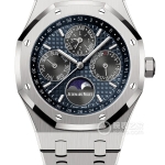 Basic Information ID: 26393ST.OO.A348KB.01 Brand: Audemars Piguet Series: CODE: 11.59 Movement Type: Automatic Mechanical Gender: Men’s Movement: Calibre 4401 Movement Type: Automatic Mechanical Manufacturer: Audemars Piguet Movement Diameter: 32mm Movement Thickness: 6.8mm Frequency: 28,800 vibrations per hour Jewels: 40 Number of Parts: 381 Power Reserve: 70 hours Exterior Case Diameter: 41mm Case Thickness: 12.6mm Dial Color: Midnight Blue Dial Shape: Round Strap Color: Blue Clasp Type: Not Available Case Back: Double-curved Anti-reflective Sapphire Crystal Weight: Not Available Water Resistance: 30 meters Hour Marker Type: Bat Hour Markers Luminous Clasp Spacing: Not Available Lug Spacing: Not Available Materials Case Material: Stainless Steel Dial Material: Midnight blue dial with blue sub-dials and a gray outer area, a gray sub-dial at 6 o’clock, 18K white gold luminous applied hour markers and hands, gray inner bezel. Bezel material: Stainless steel; Crystal material: Double-curved anti-reflective sapphire crystal glass; Crown material: Stainless steel; Bracelet material: Not available; Clasp material: Not available; Functions: Date display, chronograph, flyback/retrograde.