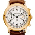 Basic Information: ID: 26100OR.OO.D088CR.01; Rose Gold; Brand: Audemars Piguet; Series: JULES AUDEMARS; Movement Type: Automatic Mechanical; Gender: Men’s; Movement Model: Calibre 3124 / 3841; Manufacturer: Audemars Piguet; Movement Diameter: 29.92 mm; Frequency: 21,600 vibrations per hour; Jewels: 59; Parts: 364; Power Reserve: 50 hours; Case Diameter: 42 mm; Case Thickness: Not available; Dial Color: White; Dial Shape: Round; Strap Color: Dark Brown; Clasp Type: Folding Clasp; Case Back: Transparent; Weight: Not available; Water Resistance: 20 meters; Hour Markers: Arabic numerals; Clasp Spacing: Not available; Lug Spacing: Not available; Materials: Case Material: 18k Rose Gold; Dial Material: Not available; Bezel Material: 18k Rose Gold; Crystal Material: Sapphire Crystal; Crown Material: 18k Rose Gold; Strap Material: Alligator Leather; Clasp Material: 18k Rose Gold; Functions: Chronograph; Thanks to the helpful user hy1456 for correcting these product parameters.
