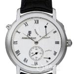 Basic Information ID: 25945BC.OO.D001CR.01 Brand: Audemars Piguet Millenary Series Movement Type: Automatic Mechanical Gender: Men’s Movement Type: Automatic Mechanical Appearance: Case Diameter: Not Available Case Thickness: Not Available Dial Color: Silver White Dial Shape: Round Strap Color: Black Clasp Type: Pin Buckle Case Back: Not Available Weight: Not Available Water Resistance: 20 Meters Hour Markers: Roman Numerals Clasp Spacing: Not Available Lug Spacing: Not Available Materials: Case Material: 18k White Gold Dial Material: Not Available Bezel Material: 18k White Gold Crystal Material: Sapphire Crystal Glass Crown Material: 18k White Gold Strap Material: Alligator Leather Clasp Material: 18k White Gold Functions: Chronograph