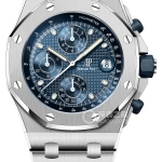 Basic Information ID: 15551BC.ZZ.1356BC.01 Brand: Audemars Piguet Royal Oak Movement Type: Automatic Mechanical Gender: Men’s Movement Model: Calibre 5900 Movement Type: Automatic Mechanical Manufacturer: Audemars Piguet Movement Diameter: 26.2 mm Movement Thickness: 3.9 mm Frequency: 28,800 vibrations per hour Number of Jewels: 29 Number of Parts: 186 Power Reserve: 60 hours Appearance Case Diameter: 37 mm Case Thickness: Not available Dial Color: Smoked Blue Dial Shape: Round Strap Color: Silver Clasp Type: Folding Clasp Case Back: Anti-reflective Sapphire Crystal Case Back Weight: Not available Water Resistance: 50 meters Hour Marker Type: Bat-shaped Hour Markers with Diamonds Clasp Spacing: Not available Lug Spacing: Not available Material Case Material: 18k White Gold Dial Material: Smoked blue dial with “Grande Tapisserie” pattern, baguette-cut diamond hour markers, and white gold luminescent Royal Oak hands. The bezel is made of 18k white gold and set with baguette-cut diamonds. The crystal is made of anti-reflective sapphire crystal. The crown is made of 18k white gold. The bracelet is made of 18k white gold. The buckle is currently unavailable. Date display is not available.