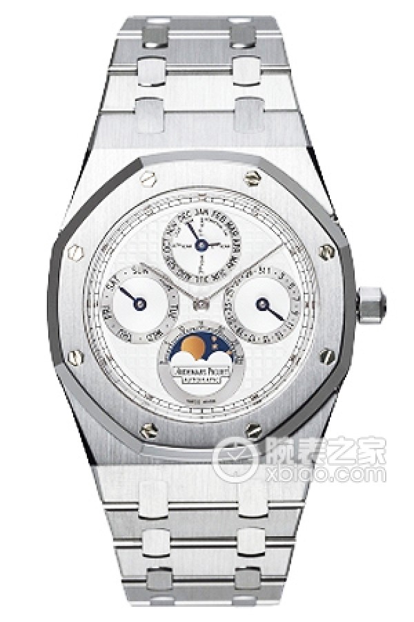 Basic Information: ID: 25820SP.OO.0944SP.03; Brand: Audemars Piguet; Series: Royal Oak; Movement Type: Automatic; Gender: Men’s; Movement Model: Cal.2120/2802; Manufacturer: Audemars Piguet; Movement Diameter: 28.4 mm; Movement Thickness: 2.45 mm; Frequency: 19,800 vibrations per hour; Shock Protection: KIF Elastor; Jewels: 38; Parts: 355; Power Reserve: 40 hours; Appearance: Case Diameter: 39 mm; Case Thickness: 9.3 mm; Dial Color: White; Dial Shape: Round; Strap Color: Silver; Clasp Type: Folding Clasp; Case Back: Transparent; Weight: Not available; Water Resistance: 20 meters; Hour Marker Type: Not available; Clasp Spacing: Not available; Lug Spacing: Not available; Material: Case Material: 18k White Gold; Dial Material: Engraved with a Grande Tapisserie pattern, featuring two-tone chronographs and white gold hands. Bezel: 18k white gold; Crystal: sapphire crystal glass; Crown: 18k white gold; Bracelet: 18k white gold; Buckle: 18k white gold; Functions: Date display, Month display, Perpetual calendar, Moon phase, Chronograph.
