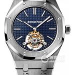Basic Information: ID: 26510ST.OO.1220ST.01; Brand: Audemars Piguet; Series: Royal Oak; Movement Type: Manual Mechanical; Gender: Men’s; Movement Model: Cal.2924; Movement Type: Manual Mechanical; Manufacturer: Audemars Piguet; Movement Diameter: 31.5 mm; Movement Thickness: 4.46 mm; Frequency: 21,600 vibrations per hour; Number of Jewels: 25; Number of Parts: 216; Power Reserve: 70 hours; Case Diameter: 41 mm; Case Thickness: 8.85 mm; Dial Color: Dark Blue; Dial Shape: Round; Strap Color: Silver; Clasp Type: Folding Clasp; Case Back: Anti-reflective Sapphire Crystal; Weight: Not available; Water Resistance: 50 meters; Hour Marker Type: White Gold; Lug Spacing: Not available; Lug Spacing: Not available; Materials: Case Material: Stainless Steel; Dial Material: Blue Dial; Engraved with Petite Tapisserie Small checkered pattern, paired with white gold luminescent applied hour markers and Royal Oak hands. Bezel is made of stainless steel. Crystal is made of anti-reflective sapphire crystal. Crown is made of stainless steel. Bracelet is made of stainless steel. Buckle is made of stainless steel. Functional tourbillon.