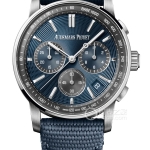 Basic Information: ID: 26574TI.OO.1220TI.01; Brand: Audemars Piguet; Series: Royal Oak; Movement Type: Automatic; Gender: Men’s; Movement Model: Calibre 5134; Movement Type: Automatic; Manufacturer: Audemars Piguet; Base Movement: Calibre 2120; Movement Diameter: 29mm; Balance Wheel Riser: Micro-adjustable; Frequency: 19,800 vibrations per hour; Number of Jewels: 38; Number of Parts: 374; Power Reserve: 40 hours; Appearance: Case Diameter: 41mm; Case Thickness: 9.5mm; Dial Color: Blue; Dial Shape: Round; Strap Color: Silver; Clasp Type: Folding Clasp; Case Back: Transparent; Weight: Not available; Water Resistance: 20 meters; Hour Marker Type: Bat; Luminous Hour Markers; Clasp Spacing: Not available; Lug Spacing: Not available; Material: Case Material: Titanium; Dial Material: Blue; Engraved with “Grande” The “Tapisserie” pattern is paired with a grey sub-dial, white gold luminescent applied hour markers and Royal Oak hands, a blue inner bezel, a titanium bezel, an anti-reflective sapphire crystal, a crown (material not specified), a titanium strap, and a buckle (material not specified). Functions include date, day of the week, month, annual calendar, perpetual calendar, and moon phase.