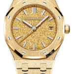 Basic Information: ID: 67630BA.GG.1312BA.01; Brand: Audemars Piguet Royal Oak; Movement Type: Quartz; Gender: Ladies; Movement Model: CALIBRE 2730; Manufacturer: Audemars Piguet; Movement Diameter: 15.7 mm; Movement Thickness: 2.2 mm; Jewels: 4; Parts: 57; Case Diameter: 23 mm; Case Thickness: 6.6 mm; Dial Color: Gold; Dial Shape: Round; Strap Color: Gold; Clasp Type: Folding Clasp; Case Back: None; Weight: None; Water Resistance: 50 meters; Hour Markers: Bat; Luminous Count: None; Lug Spacing: None; Material: Case Material: 18k gold with frosted gold finish; Dial Material: 18k gold; Bezel Material: 18k gold; Crystal Material: Anti-reflective sapphire crystal; Crown Material: 18k gold; Strap Material: 18k gold; Clasp Material: None; Functions: This watch has no other special functions.