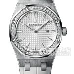 Basic Information ID: 67651ST.ZZ.D010CR.01 Brand: Audemars Piguet Royal Oak Movement Type: Quartz Gender: Ladies Movement Model: Cal.2713 Movement Type: Quartz Manufacturer: Audemars Piguet Frequency: 32,768 Hz Number of Jewels: 7 Case Diameter: 33 mm Case Thickness: 7.00 mm Dial Color: Silver-white Dial Shape: Round Strap Color: White Clasp Type: Folding Clasp Case Back: Solid Weight: Not available Water Resistance: 50 meters Hour Marker Type: Bat Hour Markers Clasp Spacing: Not available Lug Spacing: Not available Materials: Case Material: Stainless Steel Dial Material: Not available Bezel Material: Stainless Steel, set with 40 brilliant-cut diamonds Crystal Material: Sapphire Crystal Crown Material: Stainless Steel Strap Material: Alligator Leather Clasp Material: Stainless Steel Functions: Date Display