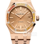 Basic Information ID: 26231BA.ZZ.D027CA.01 Brand: Audemars Piguet Royal Oak Offshore Movement Type: Automatic Mechanical Gender: Unisex Limited Edition: 100 Movement Model: Cal.2385 Movement Type: Automatic Mechanical Manufacturer: Audemars Piguet Movement Thickness: 5.5 mm Balance Wheel: Beryllium copper, with fine adjustment on the back Frequency: 21,600 vibrations per hour Hairspring: Flat hairspring Shock-resistant KIF Elastor Jewels: 37 Number of Parts: 304 Power Reserve: 40 hours Exterior Case Diameter: 37 mm Case Thickness: 12.35 mm Dial Color: Blue Dial Shape: Round Strap Color: Blue Clasp Type: Folding Clasp Case Back: Anti-reflective sapphire crystal Case Back Weight: Not available Water Resistance: 50 meters Hour Marker Type: Bat hour markers, luminous Clasp Spacing: Not available Lug Spacing: Not available Material Case Material: 18k gold Dial Material: Blue dial engraved with “Lady” The watch features a “Tapisserie” pattern, a gold sub-dial, a blue outer dial, Royal Oak hands, an 18k gold bezel set with 32 brilliant-cut diamonds totaling approximately 1.02 carats, and an anti-reflective sapphire crystal. It also includes an 18k gold crown, screw-down pushers, a rubber strap, and an 18k gold buckle. Functions include a date display and chronograph. Thanks to the helpful users min_ye618, XB_7ZK4ArpY, and XB_UCwRkhV for their corrections to the product specifications.