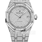 Basic Information Number: 26231ST.ZZ.D075CA.01 Brand: Audemars Piguet Royal Oak Offshore Movement Type: Automatic Mechanical Gender: Men’s Movement Model: Cal.2385 Movement Type: Automatic Mechanical Manufacturer: Audemars Piguet Movement Thickness: 5.5 mm Balance Wheel: Beryllium copper, with fine adjustment on the back Frequency: 21,600 vibrations per hour Hairspring: Flat hairspring Shock-resistant KIF Elastor Jewels: 37 Number of Parts: 304 Power Reserve: 40 hours Appearance: Case Diameter: 37 mm Case Thickness: 12.4 mm Dial Color: Purple Dial Shape: Round Strap Color: Purple Clasp Type: Folding Clasp Case Back: Transparent Weight: Not available Water Resistance: 50 meters Hour Marker Type: White gold luminescent applied hour markers Clasp Spacing: Not available Lug Spacing: Not available Material: Case Material: Stainless steel Dial Material: Purple Dial engraved with “Lady” The watch features a “Tapisserie” pattern, a blue sub-dial, a blue outer dial, Royal Oak hands, a stainless steel bezel set with diamonds (32 brilliant-cut diamonds totaling approximately 1.02 carats), an anti-reflective sapphire crystal, a stainless steel screw-down crown, a rubber strap (included with a blue rubber strap), and a stainless steel buckle. Functions include a date display and chronograph.