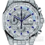 Basic Information Number: 26473BC.ZZ.D023CR.01 Brand: Audemars Piguet Royal Oak Offshore Movement Type: Automatic Mechanical Gender: Men’s Movement: Cal.3126/3840 Movement Type: Automatic Mechanical Manufacturer: Audemars Piguet Movement Diameter: 26 mm Movement Thickness: 4.26 mm Balance Wheel: Beryllium copper and inert variable elements Frequency: 21,600 vibrations per hour Hairspring: Flat hairspring Shock-resistant Kif Elastor Jewels: 59 Number of Parts: 365 Power Reserve: 60 hours Appearance: Case Diameter: 42 mm Case Thickness: 15.40 mm Dial Color: Diamond-set Dial Shape: Round Strap Color: Dark Blue Clasp Type: Folding Clasp Case Back: Anti-reflective Sapphire Crystal Weight: Not available Water Resistance: 20 meters Hour Marker Type: None Hour Marker Spacing: Not available Lug Spacing: Not available Material: 18k white gold, fully set with baguette-cut diamonds, 159 16.65 carats of baguette-cut diamonds; total weight approximately 16.65 carats. 36 baguette-cut diamonds; total weight approximately 1.12 carats. 24 baguette-cut sapphires; total weight approximately 0.88 carats (bezel). The dial is made of 18K white gold, pavé-set with baguette-cut diamonds, with luminescent blue gold Royal Oak hands, a white gold inner bezel set with baguette-cut diamonds and baguette-cut blue sapphires, and a section from 60 minutes to 15 minutes set with baguette-cut light blue sapphires. 88 baguette-cut diamonds; total weight approximately 4.80 carats; 18k white gold bezel with diamonds; anti-reflective sapphire crystal; 18k white gold screw-lock crown adorned with baguette-cut diamonds; hand-stitched “square fish scale” alligator leather strap, includes a black alligator leather strap; 18k white gold buckle adorned with baguette-cut diamonds; functions include date display and chronograph.