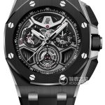 Basic Information: ID: 26622CE.OO.D002CA.01; Brand: Audemars Piguet; Series: Royal Oak Offshore; Movement Type: Automatic; Gender: Men’s; Limited Edition: 50; Movement: Calibre 2967; Movement Type: Automatic; Manufacturer: Audemars Piguet; Movement Diameter: 33.6 mm; Movement Thickness: 8.31 mm; Frequency: 21,600 vibrations per hour; Number of Jewels: 40; Number of Parts: 526; Power Reserve: 65 hours; Exterior: Case Diameter: 43 mm; Case Thickness: 15.5 mm; Dial Color: Skeletonized; Dial Shape: Round; Strap Color: Black; Clasp Type: Folding Clasp; Case Back: Not Available; Weight: Not Available; Water Resistance: 100 meters; Hour Marker Type: Not Available; Clasp Spacing: Not Available; Lug Spacing: Not Available; Materials: Case Material: Ceramic; Dial Material: Black; Subdials and inner bezel with white gold luminescent Royal Oak Offshore hands. Bezel material: Ceramic; Crystal material: Anti-reflective sapphire crystal; Crown material: Ceramic, screw-down; Strap material: Rubber (black alligator leather strap also included); Clasp material: None; Functions: Chronograph, flyback/retrograde tourbillon