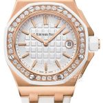 Basic Information ID: 67540OK.ZZ.D010CA.01 Brand: Audemars Piguet Royal Oak Offshore Gender: Ladies Movement: Movement Model: 2714 Manufacturer: Audemars Piguet Appearance: Case Diameter: 37mm Case Thickness: Not Available Dial Color: White Dial Shape: Round Strap Color: White Clasp Type: Pin Buckle Case Back: Not Available Weight: Not Available Water Resistance: 50 meters Hour Marker Type: Bat Hour Markers Clasp Spacing: Not Available Lug Spacing: Not Available Materials: Case Material: Rose Gold Dial Material: Not Available Bezel Material: Not Available Crystal Material: Sapphire Crystal Crown Material: Not Available Strap Material: Rubber Clasp Material: 18K Rose Gold Functions: Date Display