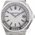 Basic Information ID: 67540SK.ZZ.A010CA.01 Brand: Audemars Piguet Royal Oak Offshore Gender: Ladies Movement: Movement Model: 2714 Manufacturer: Audemars Piguet Appearance: Case Diameter: 37mm Case Thickness: 11.1mm Dial Color: Light Silver Dial Shape: Round Strap Color: White Clasp Type: Pin Buckle Case Back: Solid Weight: Not Available Water Resistance: 50 meters Hour Marker Type: Bat Hour Markers Clasp Spacing: Not Available Lug Spacing: Not Available Materials: Case Material: Stainless steel with 32 brilliant-cut diamonds, total weight approx. 1.02 carats Dial Material: Not Available Bezel Material: White rubber Crystal Material: Sapphire crystal with anti-reflective coating Crown Material: Stainless steel, white rubber Strap Material: Rubber Clasp Material: Stainless steel Functions: This watch has no other special functions. Thanks to the enthusiastic netizen XB_10HTJ5kt2 for correcting the product parameters.