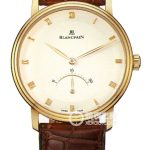 Basic Information Number: 4063-3642-55 Brand: Blancpain Series: Classic Movement Type: Automatic Gender: Men’s Movement Model: Cal.7663 Movement Type: Automatic Manufacturer: Blancpain Movement Diameter: 26.2 mm Movement Thickness: 4.6 mm Number of Jewels: 34 Number of Parts: 215 Power Reserve: 65 hours Case Diameter: 40 mm Case Thickness: 10.4 mm Dial Color: Beige Dial Shape: Round Strap Color: Dark Brown Clasp Type: Folding Clasp Case Back: Solid Weight: Not Available Water Resistance: 30 meters Hour Markers: Roman Numerals Clasp Spacing: Not Available Lug Spacing: Not Available Materials: Case Material: 18k Rose Gold Dial Material: Not Available Bezel Material: 18k Rose Gold Crystal Material: Sapphire Crystal Crown Material: 18k Rose Gold Strap Material: Alligator Leather Clasp Material: 18k Rose Gold Functions: This watch has no other special functions. Thanks to the enthusiastic netizen “凡人q” for correcting the product parameters.