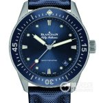 Basic Information Number: 5100-1140-O52A Brand: Blancpain Series: Fifty Fathoms Movement Type: Automatic Mechanical Gender: Men’s Movement Model: Cal.1150 Movement Type: Automatic Mechanical Manufacturer: Blancpain Movement Diameter: 26.2 mm Movement Thickness: 3.25 mm Number of Jewels: 28 Number of Parts: 210 Power Reserve: 100 hours Appearance Case Diameter: 38 mm Case Thickness: 11 mm Dial Color: Dark Blue Dial Shape: Round Strap Color: Dark Blue Clasp Type: Pin Buckle Case Back: Transparent Weight: Not Available Water Resistance: 300 meters Hour Marker Type: Round Hour Markers Luminous Clasp Spacing: Not Available Lug Spacing: 20 mm Materials Case Material: Stainless Steel Dial Material: Not Available Bezel Material: Unidirectional Rotating Satin-brushed Stainless Steel Bezel with Inlaid Ceramic and Liquid Metal Hour Markers Crystal Material: Sapphire Crystal Glass Crown Material: Stainless Steel Strap Material: NATO Clasp Material: Not Available Functions: Date Display