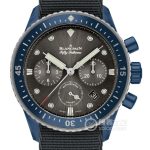 Basic Information ID: 5200-0310-NAGA Brand: Blancpain Series: Fifty Fathoms Movement Type: Automatic Mechanical Gender: Men’s Limited Edition: 250 Movement Model: F385 Movement Type: Automatic Mechanical Manufacturer: Blancpain Movement Diameter: 31.8 mm Movement Thickness: 6.65 mm Balance Wheel: Glucydur Black Gold Free-Sprung Balance Winding Spring Frequency: 36,000 vibrations per hour Hairspring: Silicon Hairspring Jewels: 37 Number of Parts: 322 Power Reserve: 50 hours Exterior Case Diameter: 43.6 mm Case Thickness: 15.25 mm Dial Color: Meteor Grey Dial Shape: Round Strap Color: Black Clasp Type: Pin Buckle Case Back: Sapphire Crystal Case Back Weight: Not Available Water Resistance: 300 meters Hour Marker Type: Round Hour Markers Luminous Clasp Spacing: Not Available Lug Spacing: 23 Millimeter material; Case material: brushed satin blue ceramic; Dial material: not specified; Bezel material: not specified; Crystal material: sapphire crystal glass; Crown material: brushed satin blue ceramic; Strap material: NATO military strap; Buckle material: ceramic; Functions: Date display, chronograph, flyback/retrograde.