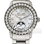 Basic Information Number: 2360-1991A-75 Brand: Blancpain Series: Leader Movement Type: Automatic Gender: Ladies Movement Type: Automatic Appearance: Case Diameter: 34mm Case Thickness: 11.4mm Dial Color: White Dial Shape: Round Strap Color: Silver Clasp Type: Folding Clasp Case Back: Not Available Weight: Not Available Water Resistance: 30 meters Hour Marker Type: Diamond-set Hour Markers: Roman Numerals Clasp Spacing: Not Available Lug Spacing: Not Available Materials: Case Material: 18k White Gold Dial Material: White Mother-of-Pearl with Diamonds Bezel Material: Diamond-set Crystal Material: Sapphire Crystal Crown Material: 18k White Gold Strap Material: 18k White Gold Clasp Material: 18k White Gold Functions: Date Display, Day Display, Month Display, Moon Phase