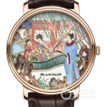 Basic Information: Model Number: 6615A-3619-55B; Brand: Blancpain; Series: Master of the Arts; Movement Type: Manual Mechanical; Gender: Unisex; Movement Model: 15B; Movement Type: Manual Mechanical; Diameter: 36.10 mm; Movement Thickness: 2.20 mm; Jewels: 20; Parts: 117; Power Reserve: 40 hours; Exterior: Case Diameter: 45 mm; Case Thickness: 8.3 mm; Dial Color: Patterned; Dial Shape: Round; Strap Color: Dark Brown; Clasp Type: Not Available; Case Back: Transparent; Weight: Not Available; Water Resistance: 30 meters; Hour Markers: None; Hour Marker Spacing: Not Available; Lug Spacing: 23.00 mm; Materials: Case Material: 18k Red Gold; Dial Material: Not Available; Bezel Material: 18k Red Gold; Crystal Material: Sapphire Crystal; Crown Material: 18k Red Gold; Strap Material: Leather Strap; Clasp Material: 18k Rose Gold; Functions: This watch has no other special functions.