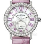 Basic Information Number 3661-1954-55B Brand Blancpain Series Women’s Movement Type Automatic Mechanical Gender Women’s Movement Model 1163 Movement Type Automatic Mechanical Manufacturer Blancpain Movement Diameter 26.2 mm Movement Thickness 3.25 mm Frequency 21,600 vibrations per hour Number of Jewels 30 Number of Parts 195 Power Reserve 100 hours Case Diameter: 34.9 mm Case Thickness: 9.2 mm Dial Color: White Dial Shape: Round Strap Color: Dream Purple Clasp Type: Folding Clasp Case Back: Transparent Weight: Not available Water Resistance: 30 meters Hour Marker Type: Roman numerals Clasp Spacing: Not available Lug Spacing: 18 mm Materials: 18k white gold case, set with 59 diamonds on the bezel, lugs, and crown; mother-of-pearl dial, set with 70 VVS grade diamonds (4Cs); 18k white gold bezel with diamonds; sapphire crystal glass; 18k white gold crown; alligator leather strap; buckle material. No other special functions are currently available.