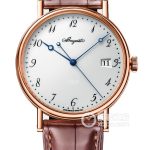Basic Information: ID: 5177BR/29/9V6; Brand: Breguet; Series: Classic; Movement Type: Automatic; Gender: Men’s; Movement Model: Cal.777Q; Movement Type: Automatic; Manufacturer: Breguet; Balance Wheel: Breguet; Frequency: 28,800 vibrations per hour; Hairspring: Flat/Silicon; Jewels: 26; Parts: 243; Power Reserve: 55 hours; Appearance: Case Diameter: 38mm; Case Thickness: 8.8mm; Dial Color: Silver-white; Dial Shape: Round; Strap Color: Dark Brown; Clasp Type: Pin Buckle; Case Back: Transparent; Weight: Not available; Water Resistance: 30 meters; Hour Markers: Arabic numerals; Clasp Spacing: Not available; Lug Spacing: Not available; Materials: Case Material: 18k Rose Gold; Dial Material: “Grand Feu” White Enamel; Bezel Material: 18k Rose Gold; Crystal Material: Sapphire Crystal; Crown Material: 18k Gold; Strap Material: Alligator Leather; Clasp Material: 18k Gold; Functions: Date Display. Thanks to the helpful netizen chinadbsat for correcting the product parameters.