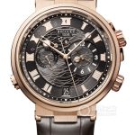 Basic Information: ID: 5547BR/G3/9ZU; Brand: Breguet; Series: Marine; Movement Type: Automatic; Gender: Men’s; Movement Model: 519F/1; Movement Type: Automatic; Manufacturer: Breguet; Balance Wheel: Breguet; Frequency: 28,800 vibrations per hour; Hairspring: flat, silicon; Jewels: 36; Parts: 376; Power Reserve: 45 hours; Appearance: Case Diameter: 40mm; Case Thickness: 13.05mm; Dial Color: Dark Brown; Dial Shape: Round; Strap Color: Dark Brown; Clasp Type: Folding Clasp; Case Back: Transparent; Weight: Not available; Water Resistance: 50 meters; Hour Markers: Roman numerals; Clasp Spacing: Not available; Lug Spacing: Not available; Materials: Case Material: 18k Rose Gold; Dial Material: Not available; Bezel Material: 18k Rose Gold; Crystal Material: Anti-reflective Sapphire Crystal; Crown Material: Screw-down Crown; Strap Material: Alligator Leather; Clasp Material: 18k Rose Gold; Functions: Date Display, Dual Time Zone, Power Reserve Display