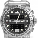 Basic Information Number: A1738811.BD44.173A Brand: Breitling Movement Type: Automatic Mechanical Gender: Men’s Movement Model: Cal.17 Movement Type: Automatic Mechanical Manufacturer: Breitling Basic Movement: SW200-01 Movement diameter: 25.6 mm; Movement thickness: 4.6 mm; Frequency: 28,800 vibrations per hour; Jewels: 26; Power reserve: 40 hours; Technical certification: Swiss Official Chronometer Testing Institute (COSC) certified; Case diameter: 44 mm; Case thickness: 11.25 mm; Dial color: Black; Dial shape: Round; Strap color: Silver; Clasp type: Folding clasp; Case back: Solid, screw-on; Weight: 96.49 grams (excluding strap); Water resistance: 200 meters; Hour markers: Bat; Clasp spacing: Not available; Lug spacing: 22/20 mm; Materials: Case material: Stainless steel; Dial material: Not available; Bezel material: Stainless steel, unidirectional ratcheting bezel; Crystal material: Sapphire crystal, double anti-reflective crown; Crown material: Stainless steel, screw-in; Strap material: Stainless steel, professional stainless steel bracelet III; Clasp material: Stainless steel; Functions: Date display