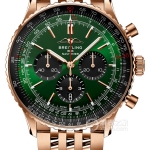 Basic Information ID: R32310251L1R1 Brand: Breitling Series: Aviation Chronograph Movement Type: Automatic Mechanical Gender: Men’s Movement Model: Cal.32 Movement Type: Automatic Mechanical Manufacturer: Breitling Base Movement: ETA 2893-2 Movement Diameter: 25.6 mm Movement Thickness: 4.1 mm Frequency: 28,800 vibrations per hour Jewels: 21 Power Reserve: 42 hours Exterior Case Diameter: 41 mm Case Thickness: Not Available Dial Color: Green Dial Shape: Round Strap Color: Gold Clasp Type: Butterfly Clasp Case Back: Solid Case Back Weight: 173.08 grams Water Resistance: 30 meters Hour Marker Type: Bat Hour Markers Luminous Clasp Spacing: Not Available Lug Spacing: 22.05 mm Materials Case Material: 18k Red Gold Dial Material: Not Available Bezel Material: 18k Red Gold Crystal Material: Domed Sapphire Crystal with Double Anti-reflective Crown Material: 18k Red Gold Strap Material: 18k Red Gold Clasp Material: Not Available Functions: Date Display, Dual Time Zone