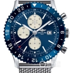 Basic Information: Aurora Blue; Brand: Breitling; Movement Type: Automatic; Gender: Men’s; Movement Model: 24; Movement Type: Automatic; Manufacturer: Breitling; Frequency: 28,800 vibrations per hour; Number of Jewels: 25; Power Reserve: 70 hours; Technical Certification: Swiss Official Chronometer Testing Institute (COSC); Appearance: Case Diameter: 46 mm; Case Thickness: 15.73 mm; Dial Color: Blue; Dial Shape: Round; Strap Color: Dark Blue; Clasp Type: Not Available; Case Back: Screw-down; Weight: Not Available; Water Resistance: 100 meters; Hour Marker Type: Bat; Clasp Spacing: Not Available; Lug Spacing: Not Available; Materials: Case Material: Stainless Steel; Dial Material: Not Available; Bezel Material: Ceramic; Crystal Material: Domed Sapphire Crystal with Double Anti-reflective Treatment; Crown Material: Stainless Steel; Strap Material: Rubber; Clasp Material: Stainless Steel; Functions: Date Display, Dual Time Zone, Chronograph