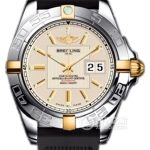 Basic Information: Model Number B49350L2.G700; White Dial with Two-Tone Finish; Brand: Breitling; Movement Type: Automatic; Gender: Men’s; Movement Model: Cal. 49; Movement Type: Automatic; Manufacturer: Breitling; Base Movement: ETA 2896; Frequency: 28,800 vibrations per hour; Number of Jewels: 22; Technical Certifications: Swiss Official Chronometer Testing Institute (COSC); Appearance: Case Diameter: 41 mm; Case Thickness: 14 mm; Dial Color: White; Dial Shape: Round; Strap Color: Two-Tone; Clasp Type: Folding Clasp; Case Back: Solid; Weight: Not Available; Water Resistance: 300 meters; Hour Marker Type: Bat; Clasp Spacing: Not Available; Lug Spacing: Not Available; Materials: Case Material: Stainless Steel; Dial Material: Not Available; Bezel Material: Stainless Steel/18K Gold; Crystal Material: Sapphire Crystal; Crown Material: Not Available; Strap Material: Stainless Steel/18K Gold; Two-Tone; Clasp Material: Stainless Steel; Functions: Date Display