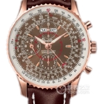 Basic Information: Model Number: G537-435X-R20BA.1; Brand: Breitling; Movement Type: Automatic Mechanical; Gender: Men’s; Movement Model: Cal.21; Movement Type: Automatic Mechanical; Manufacturer: Breitling; Base Movement: ETA 7751; Movement Diameter: 30mm; Frequency: 28,800 vibrations per hour; Number of Jewels: 25; Power Reserve: 42 hours; Technical Certification: Swiss Official Chronometer Testing Institute (COSC); Appearance: Case Diameter: 43mm; Case Thickness: 14.1mm; Dial Color: Tobacco; Dial Shape: Round; Strap Color: Black; Clasp Type: Pin Buckle; Case Back: Solid; Weight: Not Available; Water Resistance: 30 meters; Hour Marker Type: Bat; Clasp Spacing: Not Available; Lug Spacing: Not Available; Materials: Case Material: Rose Gold; Dial Material: Not Available; Bezel Material: Rose Gold; Crystal Material: Sapphire Crystal; Crown Material: Not Available; Strap Material: Calfskin; Clasp Material: Rose Gold; Functions: Date Display, Day Display, Chronograph