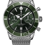 Basic Information Number AB01342B1L4A1 Brand Breitling Series Mechanical Chronograph Movement Type Automatic Mechanical Gender Men’s Limited Edition 104 Movement Movement Model B01 Movement Type Automatic Mechanical Manufacturer Breitling Movement Diameter 30mm Movement Thickness 7.2mm Frequency 28,800 vibrations per hour Number of Jewels 47 Number of Parts 346 Power Reserve 70 hours Technical Certification Swiss Observatory Appearance Case Diameter: 42mm Case Thickness: 15.1mm Dial Color: White, Green Dial Shape: Round Strap Color: Silver Clasp Type: Folding Clasp Case Back: Transparent Weight: 199g Water Resistance: 200 meters Hour Marker Type: Bat Hour Markers Clasp Spacing: 20mm Lug Spacing: 22mm Materials Case Material Stainless Steel Dial Material Not Available Bezel Material Stainless Steel Crystal Material Sapphire Crystal Crown Material Stainless Steel Strap Material Stainless Steel Clasp Material Stainless Steel Functions Date Display Chronograph