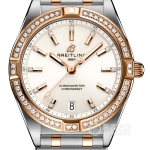 Basic Information Number: R10380101A1R1 Brand: Breitling Series: Mechanical Movement Type: Automatic Gender: Ladies Movement Model: Cal.10 Movement Type: Automatic Manufacturer: Breitling Base Movement: ETA 2892-A2 Frequency: 28,800 vibrations per hour; Number of jewels: 25; Power reserve: 42 hours; Technical certification: Swiss Official Chronometer Testing Institute (COSC) certified; Case diameter: 36 mm; Case thickness: 10.01 mm; Dial color: White; Dial shape: Round; Strap color: Gold; Clasp type: Butterfly clasp; Case back: Solid; Weight: Not available; Water resistance: 100 meters; Hour markers: Bat markers, luminous; Clasp spacing: Not available; Lug spacing: 18/16 mm; Materials: Case material: 18K red gold; Dial material: Super-LumiNova® luminous markers and hands; Bezel material: 18K red gold; Crystal material: Domed sapphire crystal with double anti-reflective coating; Crown material: Non-screw-down, double gasketed; Strap material: 18K red gold; Clasp material: 18K red gold; Functions: Date display, antimagnetic.