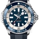 Basic Information Number U17375211B1S1 Brand Breitling Series Superocean Movement Type Automatic Mechanical Gender Men’s Movement Movement Model Cal.17 Movement Type Automatic Mechanical Manufacturer Breitling Base Movement SW200-01 Movement Diameter 25.6 mm Movement Thickness 4.6 mm Frequency 28,800 vibrations per hour Number of Jewels 26 Power Reserve 40 hours Technical Certifications Swiss Observatory Certification Exterior Case Diameter: 42 mm Case Thickness: 12.56 mm Dial Color: Black Dial Shape: Round Strap Color: Black Clasp Type: Folding Clasp Case Back: Screw-down Stainless Steel Case Back Weight: Not available Water Resistance: 300 meters Hour Marker Type: Bat Hour Markers Clasp Spacing: Not available Lug Spacing: 22/18 Materials: Case material: Stainless steel; Dial material: Not available; Bezel material: Ratched unidirectional rotating bezel, 18K red gold with ceramic setting; Crystal material: Domed sapphire crystal, double anti-reflective crown; Crown material: Screw-down crown with double gaskets; Strap material: Rubber; Buckle material: Stainless steel; Functions: This watch has no other special functions.