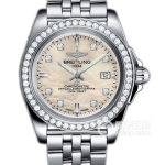 Basic Information ID: W71330121A2A1 Brand: Breitling Movement Type: Quartz Gender: Ladies Movement Model: Cal.71 Movement Type: Quartz Manufacturer: Breitling Battery Life: 6 years Case Diameter: 32 mm Case Thickness: 10.79 mm Dial Color: White Dial Shape: Round Strap Color: Silver Clasp Type: Folding Clasp Case Back: Solid, Rotary Tightening Weight: 39.75 grams (excluding strap) Water Resistance: 100 meters Hour Marker Type: Bat Hour Markers Clasp Spacing: Not available Lug Spacing: 16/14 mm Materials: Case Material: Stainless Steel Dial Material: Mother-of-Pearl Bezel Material: Tungsten Steel Bezel Crystal Material: Domed Double Anti-reflective Sapphire Crystal Crown Material: Stainless Steel, Non-rotary Tightening, Triple Sealing Strap Material: Stainless Steel, Pilot Watch Strap Clasp Material: Stainless Steel Functions: Date Display