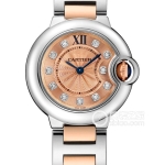 Basic Information ID: W6920070 Brand: Cartier Series: Ballon Bleu Movement Type: Automatic Gender: Ladies Movement Model: Cal.076 Movement Type: Automatic Manufacturer: Cartier Base Movement: ETA 2671 Jewels: 25 Case Diameter: 33mm Case Thickness: 9.96mm Dial Color: Pink Dial Shape: Round Strap Color: Two-tone Clasp Type: Folding Clasp Case Back: Solid Weight: Not available Water Resistance: 30 meters Hour Markers: Roman numerals Clasp Spacing: Not available Lug Spacing: Not available Materials: Case Material: Stainless Steel Dial Material: Mother-of-Pearl Bezel Material: Stainless Steel Crystal Material: Sapphire Crystal Crown Material: 18k Rose Gold, set with a cabochon synthetic spinel Strap Material: Stainless Steel/18k Rose Gold; Two-tone Clasp Material: Stainless Steel/Rose Gold Functions: This watch has no other special functions.