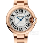 Basic Information ID: WE902079 Brand: Cartier Series: Ballon Bleu Movement Type: Quartz Gender: Ladies Movement Type: Quartz Case Diameter: 28mm Case Thickness: 9.35mm Dial Color: Silver-white Dial Shape: Round Strap Color: Silver Clasp Type: Folding Clasp Case Back: Not Available Weight: Not Available Water Resistance: 30 meters Hour Markers: Roman numerals Clasp Spacing: Not Available Lug Spacing: Not Available Materials: Case Material: Stainless Steel 18K Rose Gold Dial Material: Transparent Enamel Dial Sword-shaped Blued Steel Hands Bezel Material: Stainless Steel 18K Rose Gold Diamond Set Crystal Material: Sapphire Crystal Glass Crown Material: 18k Rose Gold Set with a Cabochon Synthetic Spinel Strap Material: Stainless Steel Clasp Material: Rose Gold Functions: This watch has no other special functions.