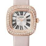 Basic Information ID: WJBB0040 Brand: Cartier Series: Ballon Bleu Movement Type: Automatic Gender: Ladies Movement Type: Automatic Appearance: Case Diameter: 33mm Case Thickness: 10mm Dial Color: Silver Gray Dial Shape: Round Strap Color: Dark Brown Clasp Type: Pin Buckle Case Back: Not Available Weight: Not Available Water Resistance: 30 meters Hour Markers: Roman Numerals Clasp Spacing: Not Available Lug Spacing: Not Available Materials: Case Material: 18k Gold Dial Material: Silver-plated Sunray finish brushed dial, sword-shaped blued steel hands Bezel Material: 18k Gold, set with 47 brilliant-cut round diamonds, totaling 0.68 carats Crystal Material: Sapphire Crystal Crown Material: Fluted crown, set with a cabochon sapphire Strap Material: Alligator Leather Clasp Material: 18k Gold Functions: This watch has no other special functions.