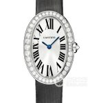 Basic Information ID: WB520008 Brand: Cartier Series: Bathtub Movement Type: Quartz Gender: Ladies Movement Model: Cal.057 Movement Type: Quartz Manufacturer: Cartier Appearance: Case Diameter: 31.6*24.5 mm Case Thickness: 8.21 mm Dial Color: Silver White Dial Shape: Oval Strap Color: Dark Gray Clasp Type: Folding Clasp Case Back: Solid Weight: Not Available Water Resistance: 30 meters Hour Markers: Roman Numerals Clasp Spacing: Not Available Lug Spacing: Not Available Materials: Case Material: 18k white gold with diamonds Dial Material: Silver-plated sunray finish, blued steel sword-shaped hands Bezel Material: Not Available Crystal Material: Sapphire Crystal Crown Material: 18k white gold Strap Material: Silk Clasp Material: 18k rhodium-plated white gold Functions: This watch has no other special functions.