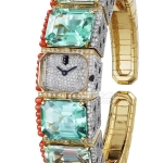 Basic Information ID HPI00686 Brand: Cartier Series Creative Gemstone Watch Movement Type: Quartz Gender: Ladies Movement Model: Cal.058 Movement Type: Quartz Manufacturer: Cartier Number of Gems: 4 Appearance Case Diameter: Not available Case Thickness: Not available Dial Color: Silver Gray Dial Shape: Round Strap Color: Black Clasp Type: Not available Case Back: Solid Case Back Weight: Not available Water Resistance: 30 meters Hour Marker Type: None Hour Marker Spacing: Not available Lug Spacing: Not available Material Case Material: 18k white gold case and bracelet set with 938 onyx beads, totaling 81.04 carats; 38 square diamonds, totaling 0.97 carats and 808 brilliant-cut round diamonds, totaling 7.17 carats; panther eyes set with two pear-shaped emeralds, totaling 0.03 carats; panther nose set with onyx, totaling 0.03 carats. Dial: 18K rhodium-plated white gold dial, set with 76 brilliant-cut round diamonds, totaling 0.16 carats; 18K rhodium-plated yellow gold sword-shaped hands; bezel: 18K white gold with diamonds; crystal: sapphire crystal; crown: not specified; strap: white gold/onyx; buckle: white gold. Functions: This watch has no other special functions.