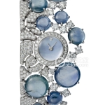 Basic Information Number HPI00747 Brand: Cartier Series: Creative Gemstone Watch Movement Type: Quartz Gender: Women’s Limited Edition: 1 Movement Model: Cal.058 Movement Type: Quartz; Manufacturer: Cartier; Jewels: 4; Case Diameter: Not available; Case Thickness: Not available; Dial Color: Silver; Dial Shape: Round; Strap Color: Silver; Buckle Type: Not available; Case Back: Solid; Weight: Not available; Water Resistance: 30 meters; Hour Marker Type: None; Hour Marker Spacing: Not available; Lug Spacing: Not available; Materials: Case Material: 18k white gold; Case and bracelet set with one round rose-cut diamond totaling 2.89 carats, 399 brilliant-cut round diamonds totaling 12.13 carats, and two blue sapphires (dove’s eyes) totaling 0.01 carats; Dial Material: White silver-plated translucent lacquered dial with sunburst effect; 12 o’clock hour marker set with a brilliant-cut round diamond; sword-shaped 18k rhodium-plated white gold hands; Bezel Material: 18k white gold with diamonds; Crystal Material: Sapphire crystal; Crown Material: Not available; Strap Material: 18k white gold with diamonds; Buckle Material: 18k white gold with diamonds; Functions: This watch has no other special functions.