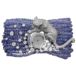Basic Information ID HPI00948 Brand: Cartier Series Creative Gemstone Watch Movement Type: Quartz Gender: Ladies Movement Type: Quartz Appearance: Case Diameter: Not Available Case Thickness: Not Available Dial Color: Not Available Dial Shape: Not Available Strap Color: Silver Buckle Type: Not Available Case Back: Not Available Weight: Not Available Water Resistance: 30 meters Hour Marker Type: Not Available Buckle Spacing: Not Available Lug Spacing: Not Available Materials: Case Material: 18K rhodium-plated white gold case and bracelet, set with a cabochon-cut Ceylon sapphire weighing 25.17 carats, 28 trapezoidal-cut diamonds weighing 1.49 carats, and 768 brilliant-cut round diamonds weighing 14.71 carats Dial Material: Silver-plated translucent lacquered dial with sunburst effect, a square diamond hour marker at 12 o’clock, and sword-shaped 18K rhodium-plated white gold hands Bezel Material: Not Available Crystal Material: Not Available Crown Material: Not Available Strap Material: Not Available Buckle Material: Not Available Functions: This watch has no other special functions.