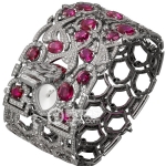 Basic Information ID HPI00986 Brand: Cartier Series Creative Gemstone Watch Movement Type: Quartz Gender: Ladies Movement Movement Type: Quartz Appearance Case Diameter: Not Available Case Thickness: Not Available Dial Color: Not Available Dial Shape: Not Available Strap Color: Not Available Clasp Type: Not Available Case Back: Not Available Weight: Not Available Water Resistance: 30 meters Hour Marker Type: Not Available Clasp Spacing: Not Available Lug Spacing: Not Available Materials Case Material: 18k white gold with diamond-set case and bracelet, set with 24 trapezoidal-cut diamonds totaling 2.84 carats, 440 brilliant-cut round diamonds totaling 9.08 carats, and 48 onyx stones totaling 8.30 carats Dial Material: 18k rhodium-plated white gold Dial set with 48 brilliant-cut round diamonds totaling 0.22 carats, sword-shaped 18k rhodium-plated white gold hands Bezel Material: Not Available Crystal Material: Not Available Crown Material: Not Available Strap Material: Not Available Clasp Material: Not Available Functions: This watch has no other special functions.
