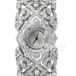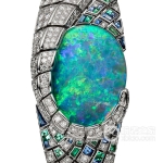 Basic Information ID HPI01109 Brand: Cartier Series Creative Gemstone Watch Movement Type: Manual Mechanical Gender: Ladies Movement Movement Type: Manual Mechanical Appearance Case Diameter: Not Available Case Thickness: Not Available Dial Color: White Dial Shape: Other Strap Color: Silver, Blue Clasp Type: Not Available Case Back: Not Available Weight: Not Available Water Resistance: Not Available Hour Marker Type: Not Available Clasp Spacing: Not Available Lug Spacing: Not Available Materials Case Material: 18K rhodium-plated white gold Case and bracelet, set with a cushion-cut multi-faceted turquoise aquamarine weighing 39.28 carats, sapphire leopard print, emerald leopard eyes, onyx leopard nose, 1617 brilliant-cut round diamonds totaling 33.91 carats Dial Material: Brushed sunburst dial with diamond-set hour markers and rhodium-plated sword-shaped stainless steel hands Bezel Material: Not Available Crystal Material: Sapphire Crystal Glass Crown Material: Not Available Strap Material: Not Available Clasp Material: Not Available Functions: This watch has no other special functions.