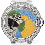 Cartier floral marquetry parrot-decorated watch Automatic mechanical design, 18K rhodium-plated white gold, set with 124 round diamonds, total weight 1.42mm.