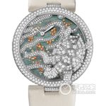 Basic Information ID HPI00405 Brand: Cartier Series High Jewelry Watch Movement Type: Quartz Gender: Ladies Limited Edition: 80 Movement Model: Cal.056 Movement Type: Quartz Manufacturer: Cartier Jewels: 5 Case Diameter: 40mm Case Thickness: 7.6mm Dial Color: Diamond-set Dial Shape: Round Strap Color: White Clasp Type: Pin Buckle Case Back: Solid Weight: Not available Water Resistance: 30 meters Hour Marker Type: None Hour Marker Spacing: Not available Lug Spacing: Not available Materials Case Material: 18k white gold with diamonds Dial Material: 18k white gold, set with round diamonds, champlevé enamel and enamel painting Bezel Material: Not available Crystal Material: Sapphire crystal Crown Material: Not available Strap Material: Silk strap Clasp Material: 18k white gold with diamonds – round diamonds Functions: This watch has no other special functions.