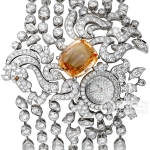 Basic Information ID HPI00768 Brand: Cartier Series High Jewelry Watch Movement Type: Quartz Gender: Ladies Movement Type: Quartz Appearance: Case Diameter: Not Available Case Thickness: Not Available Dial Color: Silver Dial Shape: Round Strap Color: Silver Clasp Type: Not Available Case Back: Not Available Weight: Not Available Water Resistance: 30 meters Hour Marker Type: Not Available Clasp Spacing: Not Available Lug Spacing: Not Available Material: 18k white gold set with 136 brilliant-cut round diamonds, totaling 1.04 carats; 18k rhodium-plated white gold hunting… The panther watch features 250 brilliant-cut round diamonds totaling 1.53 carats, pear-shaped emeralds for the eyes, and an onyx nose. The dial is made of 18K rhodium-plated white gold, set with 123 brilliant-cut round diamonds totaling 0.57 carats, and sword-shaped rhodium-plated stainless steel hands. The bezel material is currently unavailable. The crystal is sapphire crystal. The crown material is currently unavailable. The strap is 18K white gold, set with 325 brilliant-cut round diamonds totaling 9.15 carats. The buckle material is currently unavailable. This watch has no other special functions.