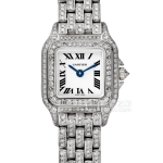 Basic Information ID HPI01608 Brand: Cartier Series: PANTHÈRE JEWELLERY WATCHES Movement Type: Quartz Gender: Ladies Movement Type: Quartz Appearance: Case Diameter: 23.6 mm Case Thickness: 7.7 mm Dial Color: Gold Dial Shape: Other Strap Color: Dark Blue Clasp Type: Pin Buckle Case Back: None Weight: None Water Resistance: 30 meters Hour Marker Type: None Hour Marker Spacing: None Lug Spacing: None Material: Case Material: 18k gold, set with 40 brilliant-cut diamonds totaling 0.24 carats Dial Material: Gold dial, sword-shaped blued steel hands Bezel Material: None Crystal Material: Sapphire Crystal Glass Crown Material: None Strap Material: Alligator Leather Clasp Material: 18k Gold Functions: This watch has no other special functions.