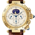Basic Information: Model Number: PASHA DE CARTIER 2009; Brand: Cartier; Series: Pasha; Movement Type: Automatic Mechanical; Gender: Men’s; Movement Model: Automatic Winding Mechanical; Movement Type: Automatic Mechanical; Diameter: 25.3 mm; Movement Thickness: 4.5 mm; Frequency: 28,800 vibrations per hour; Number of Jewels: 28; Power Reserve: 47 hours; Exterior: Case Diameter: 42 mm; Case Thickness: Not Available; Dial Color: White; Dial Shape: Round; Strap Color: Brown; Clasp Type: Not Available; Case Back: Not Available; Weight: Not Available; Water Resistance: 100 meters; Hour Marker Type: Not Available; Clasp Spacing: Not Available; Lug Spacing: Not Available; Materials: Case Material: 18K Rose Gold; Dial Material: Not Available; Bezel Material: Not Available; Crystal Material: Sapphire Crystal; Crown Material: Not Available; Strap Material: Alligator Leather; Clasp Material: Not Available; Functions: Date Display