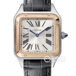 Basic Information ID: W2SA0011 (Large) Brand: Cartier Santos Gender: Men’s Movement: Cal.9F Manufacturer: Unknown Appearance: Case Diameter: 43.5 x 31.4 mm Case Thickness: 7.3 mm Dial Color: Silver Dial Shape: Square Strap Color: Black Clasp Type: Pin Buckle Case Back: Solid Weight: Not Available Water Resistance: 30 meters Hour Markers: Roman Numerals Clasp Spacing: Not Available Lug Spacing: Not Available Materials: Case Material: Stainless Steel Dial Material: Silver-plated brushed dial, sword-shaped blued steel hands Bezel Material: 18k Rose Gold Crystal Material: Sapphire Crystal Glass Crown Material: Stainless Steel Beaded Winding Crown with a cabochon blue synthetic spinel Strap Material: Alligator Leather Clasp Material: Stainless Steel Functions: This watch has no other special functions.