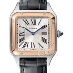 Basic Information ID: W2SA0038 Brand: Cartier Series: Santos Movement Type: Quartz Gender: Men’s Movement Type: Quartz Case Diameter: 38*27.5 mm Case Thickness: 7.3 mm Dial Color: Silver Gray Dial Shape: Square Strap Color: Black Clasp Type: Pin Buckle Case Back: Solid Weight: Not Available Water Resistance: 30 meters Hour Marker Type: Roman Numerals Clasp Spacing: Not Available Lug Spacing: Not Available Material: Case Material: Stainless Steel, 18k Rose Gold Dial Material: Not Available Bezel Material: 18k Rose Gold Crystal Material: Sapphire Crystal Glass Crown Material: Stainless Steel with Blue Synthetic Spinel Strap Material: Alligator Leather Clasp Material: Stainless Steel Functions: This watch has no other special functions.