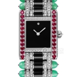 Basic Information ID: W4SA0007 Brand: Cartier Series: Santos Movement Type: Automatic Gender: Ladies Movement Model: 1847 MC Movement Type: Automatic Manufacturer: Cartier Appearance: Case Diameter: 35.1 mm Case Thickness: 8.83 mm Dial Color: Gradient Blue Dial Shape: Square Strap Color: Blue Clasp Type: Folding Clasp Case Back: Not Available Weight: Not Available Water Resistance: 100 meters Hour Markers: Roman Numerals Clasp Spacing: Not Available Lug Spacing: Not Available Materials: Case Material: Stainless Steel Dial Material: Gradient blue dial, stainless steel sword-shaped hands Bezel Material: Stainless steel, set with 206 round brilliant-cut diamonds, total weight 0.64 carats Crystal Material: Sapphire Crystal Crown Material: Stainless Steel, 7-faceted crown set with faceted synthetic spinel Strap Material: Smooth calfskin (stainless steel bracelet with “Intelligent Link” adjustment system) Clasp Material: Stainless Steel Functions: This watch has no other special functions.