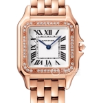 Basic Information Number WGSA0022 (Small) Brand Cartier Series Santos Movement Type Quartz Gender Ladies Movement Power Reserve 6-hour Case Diameter: 38 x 27.5 mm Case Thickness: 7.3 mm Dial Color: Silver Dial Shape: Square Strap Color: Gray Clasp Type: Pin Buckle Case Back: Solid Weight: Not Available Water Resistance: 30 meters Hour Markers: Roman Numerals Clasp Spacing: Not Available Lug Spacing: Not Available Materials Case Material: 18k Rose Gold Dial Material: Silver-plated brushed dial with sword-shaped blued steel hands Bezel Material: 18k Rose Gold Crystal Material: Sapphire Crystal Glass Crown Material: 18k Rose Gold with blue cabochon gemstone Strap Material: Alligator Leather Clasp Material: 18k Rose Gold Functions: This watch has no other special functions.